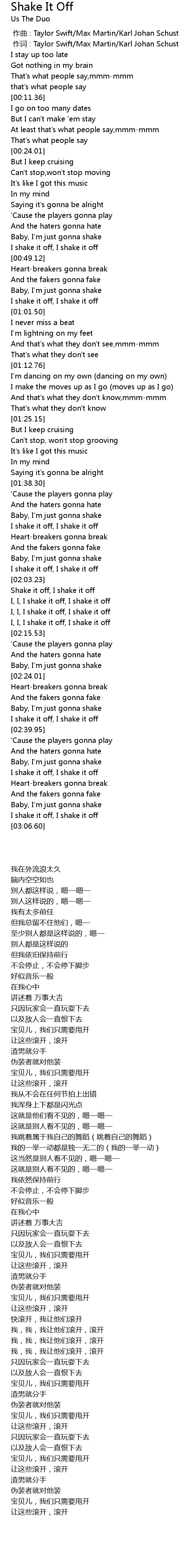 | [00:46.65] | I shake it off, I shake it off |