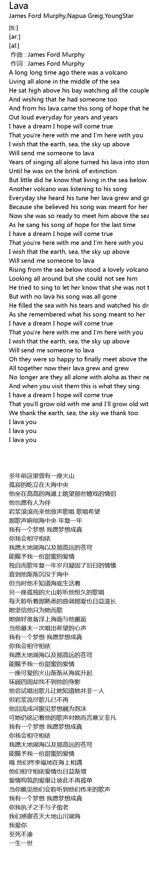 | [02:04.25] | Everyday she heard his tune her lava grew and grew |