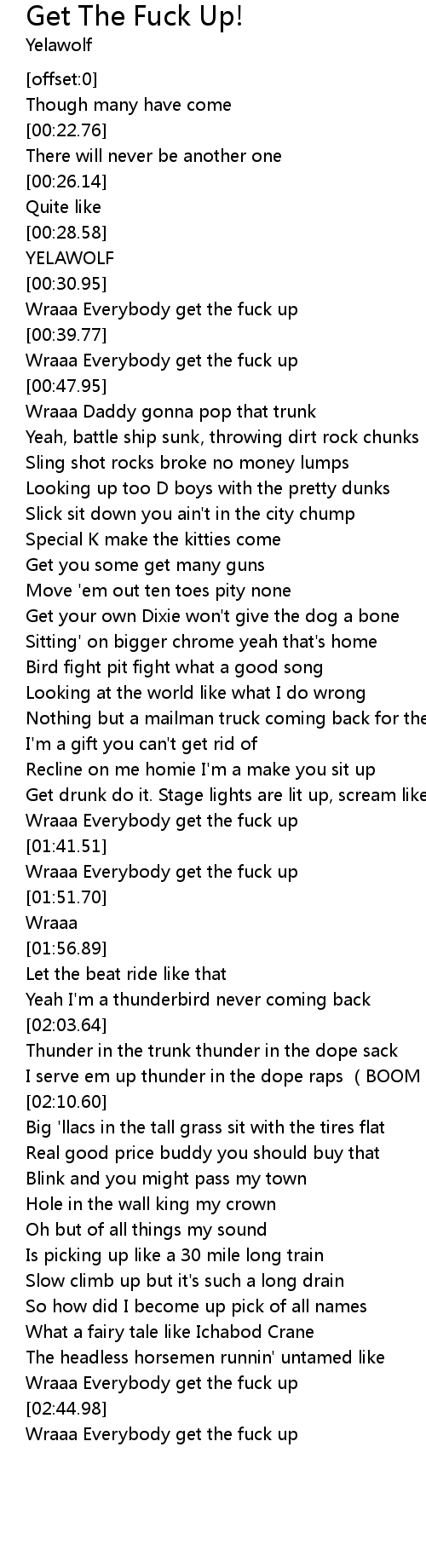 | [02:38.60] | Wraaa Everybody get the fuck up |