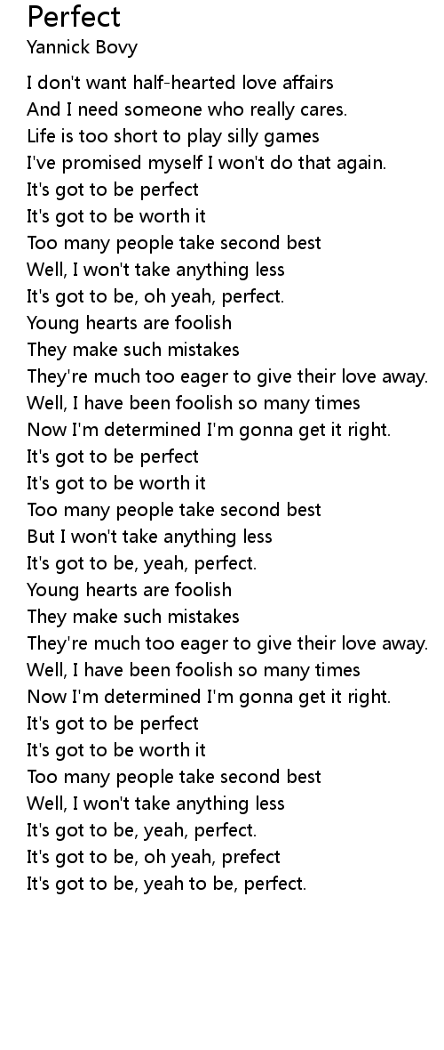 It's got to be perfect |