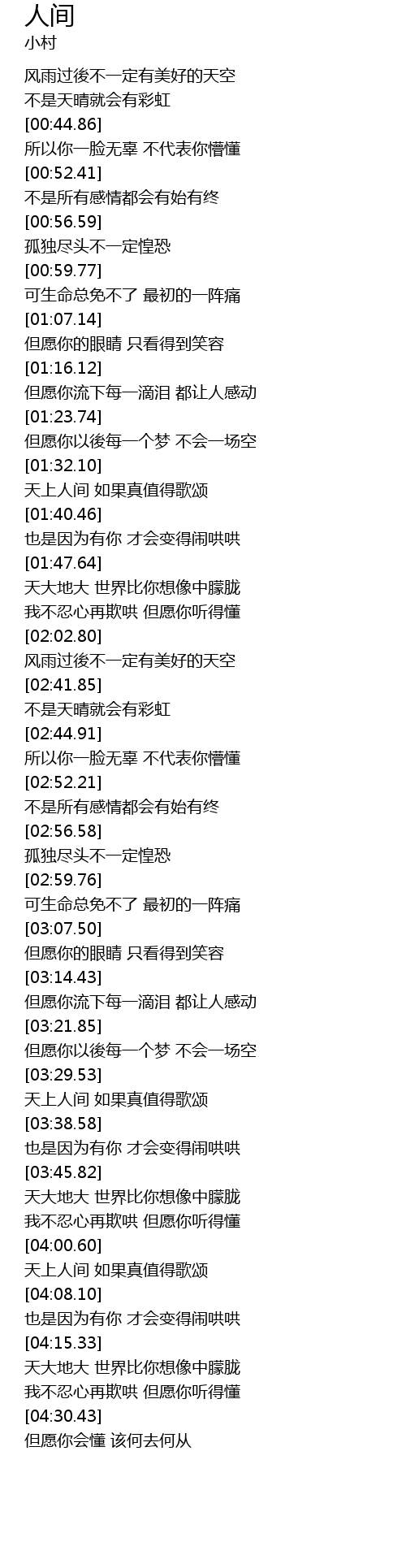 | [04:01.98] | 天上人间 如果真值得歌颂 |