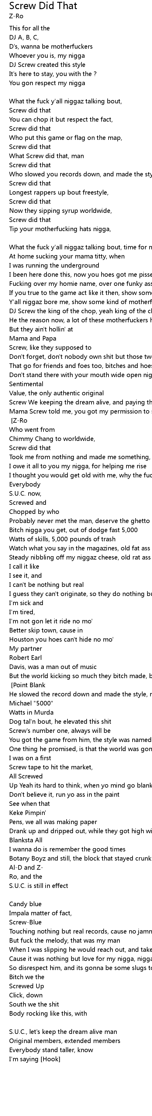 | DJ Screw the king of the chop, yeah king of the chop | |
