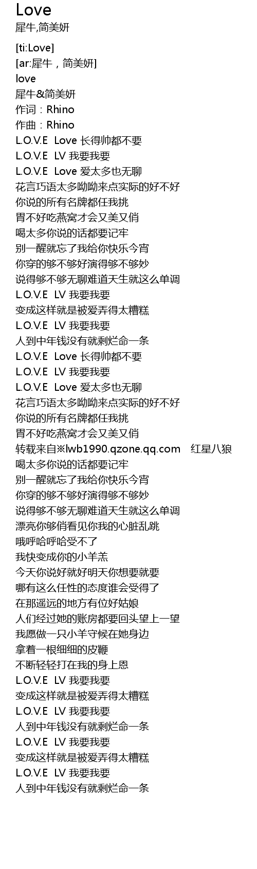 | [00:56.75] | L. O. V. E LV wo yao wo yao |