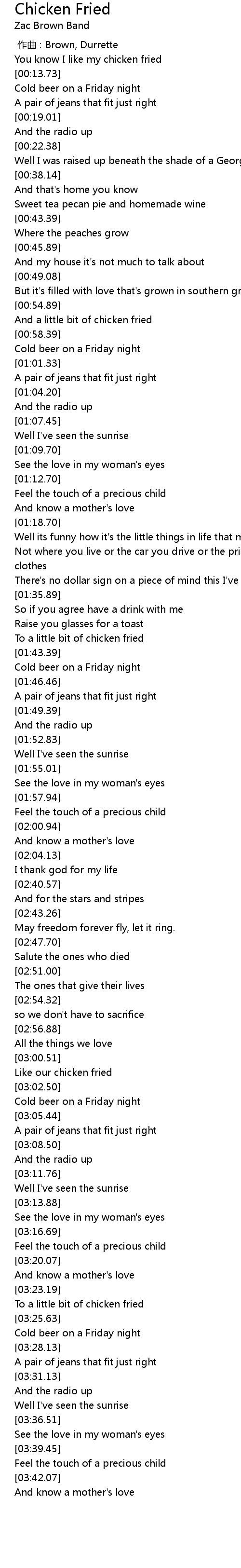 | [01:42.02] | To a little bit of chicken fried |