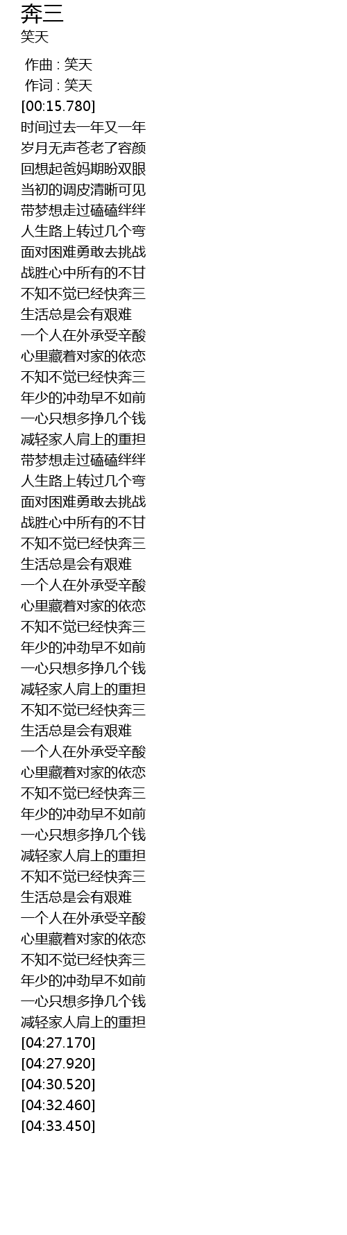 | [03:53.010] | 不知不觉已经快奔三 |