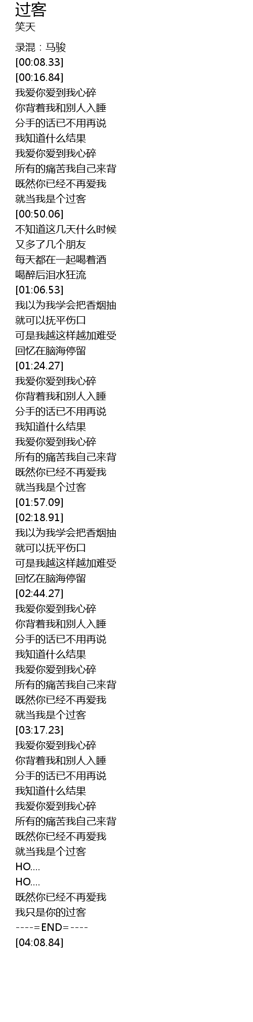 | [04:01.03] | wǒ zhǐ shì nǐ de guò kè |