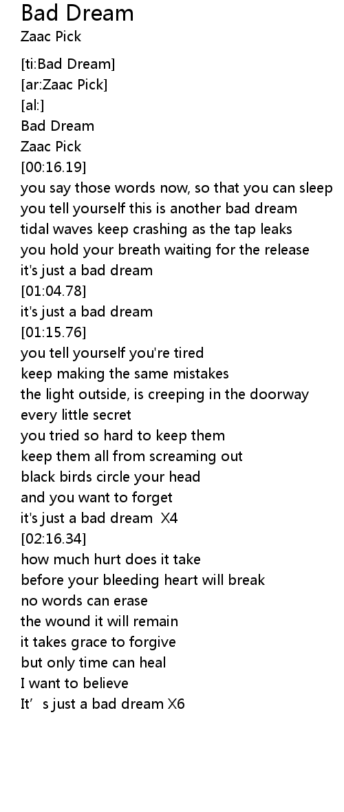 | [00:02.61] | Bad Dream |