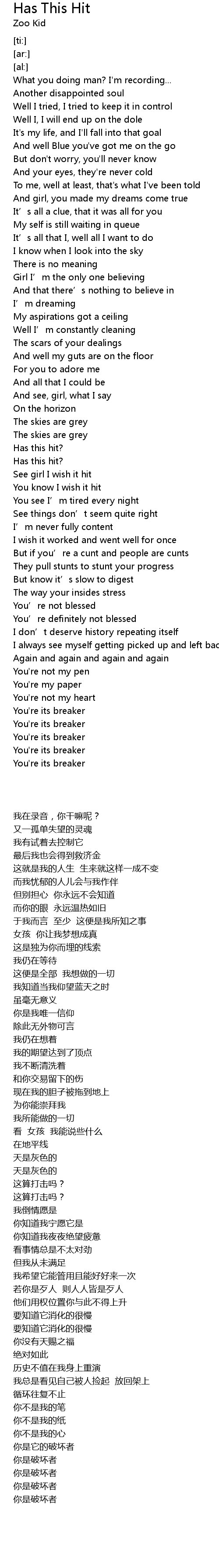 | [04:38.18] | 你是破坏者 |