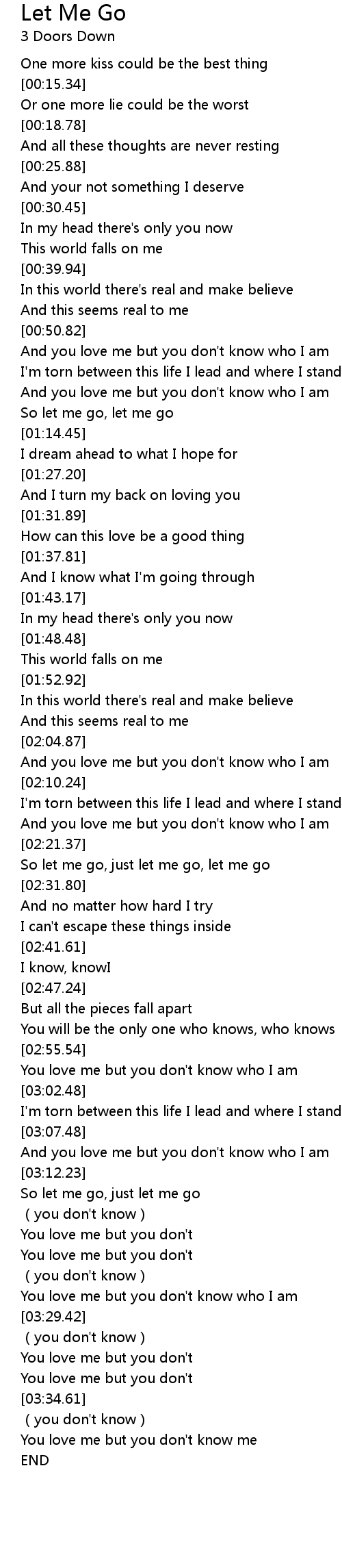 | [00:59.95] | I' m torn between this life I lead and where I stand |