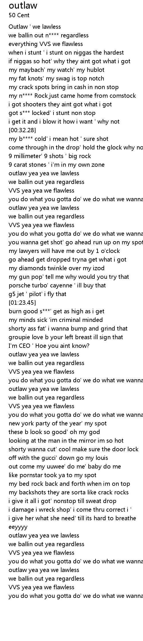 | [01:38.25] | outlaw yea yea we lawless |