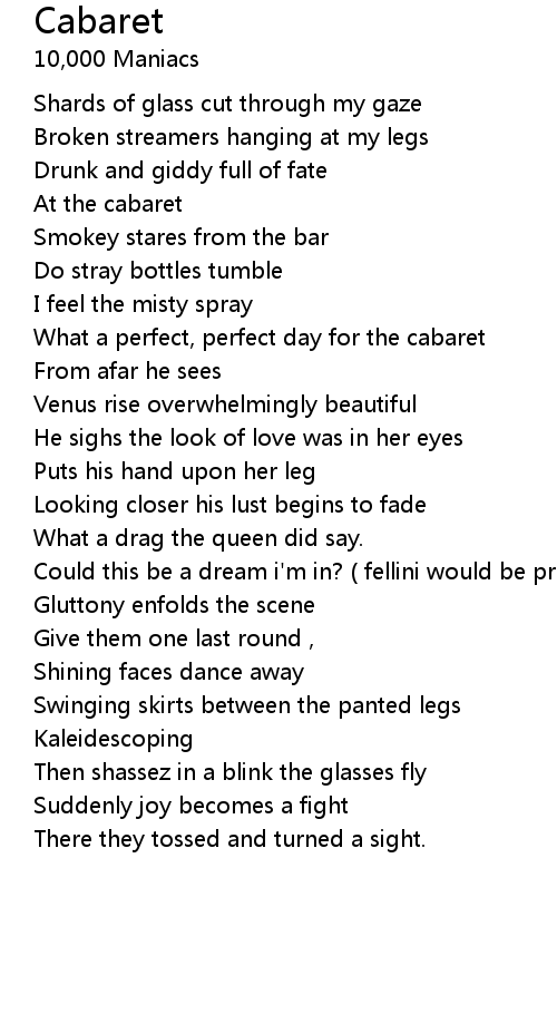 What a perfect, perfect day for the cabaret |