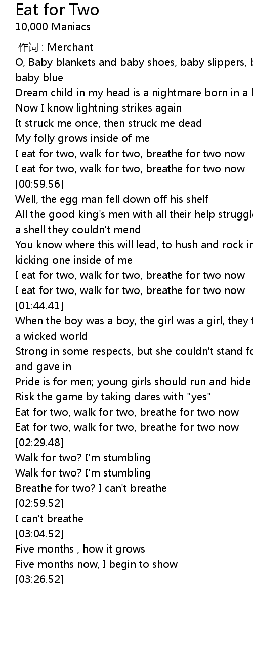 | [00:53.68] | I eat for two, walk for two, breathe for two now |