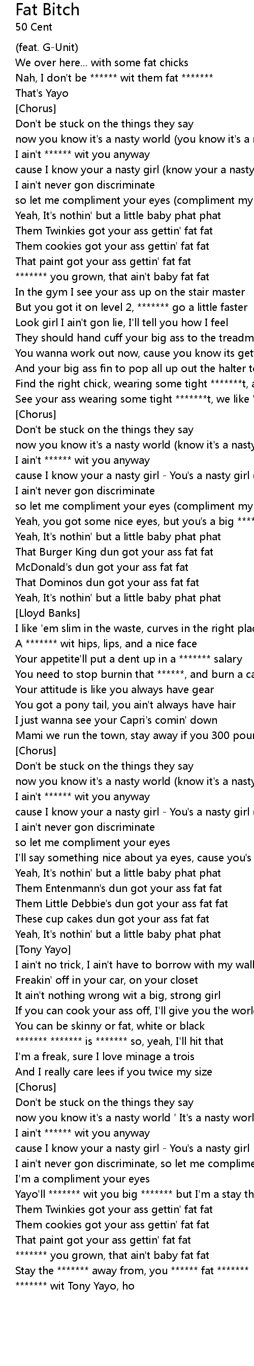 Nah, I don't be ****** wit them fat ******* |
