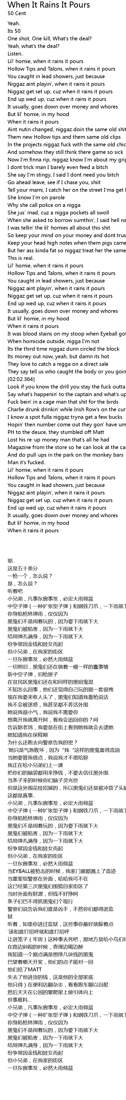 | [02:40.538] | 黑鬼们不是闹着玩的,因为要下雨就下大 |