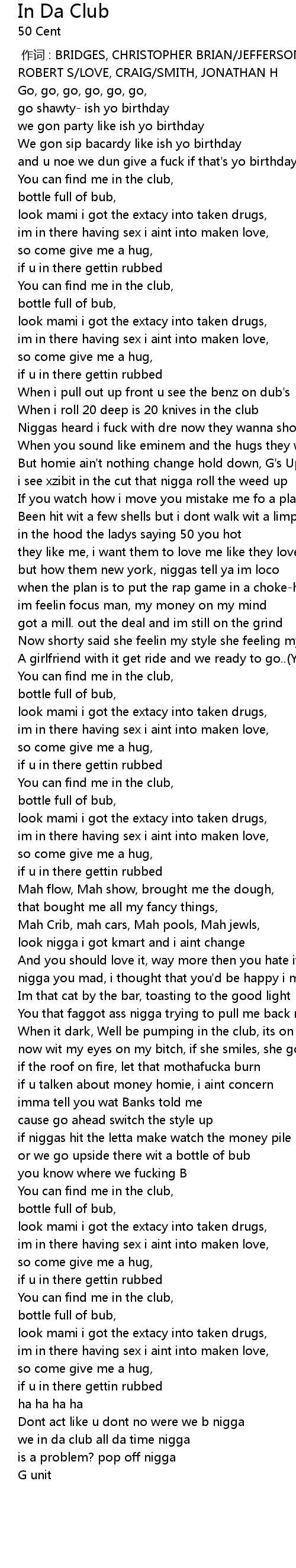 In Da Club 歌词
