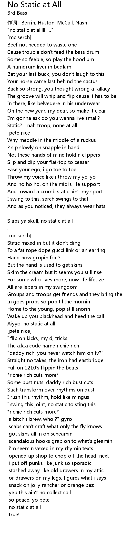 | 歌曲 | No Static at All |