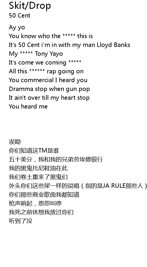 | [00:08.217] | 外头你们这些屎一样的说唱(指的是JA RULE那些人) |