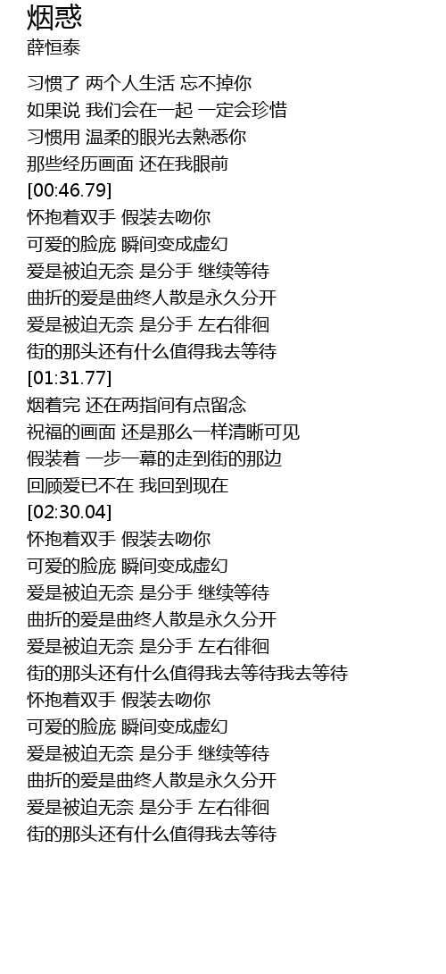 | [02:46.30] | 爱是被迫无奈 是分手 继续等待 |
