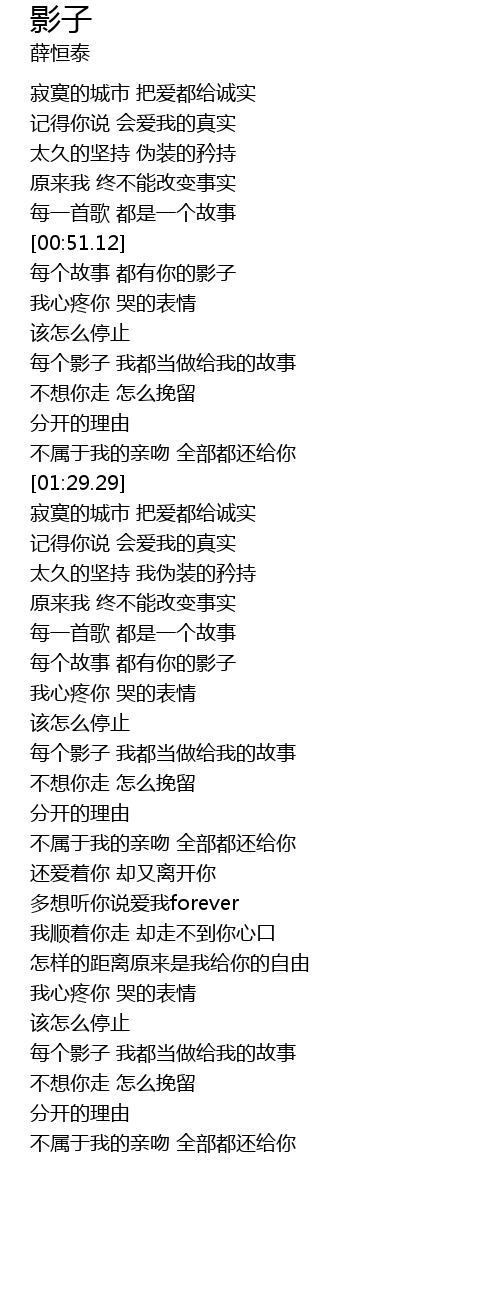 | [03:52.54] | 每个影子 我都当做给我的故事 |