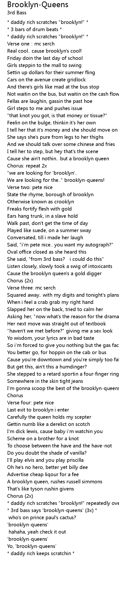 | * 3rd bass says 'brooklyn-queens' (3x) * | |