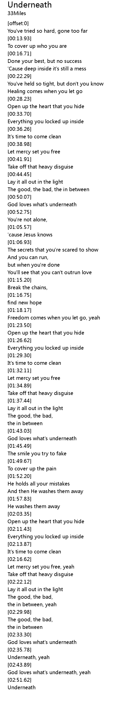 | [02:34.60] | God loves what's underneath |