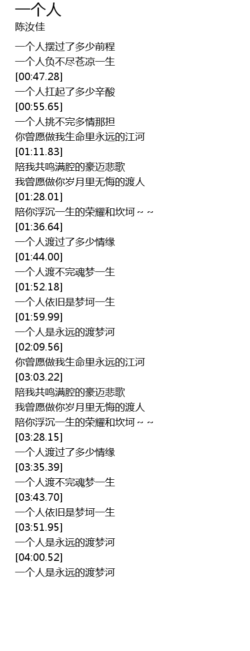 | [03:53.01] | 一个人是永远的渡梦河 |