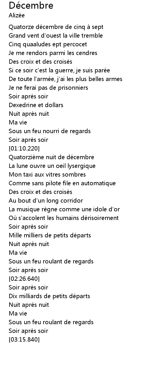 | [00:00.200] | Quatorze décembre de cinq à sept |