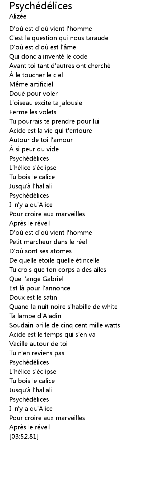 | [02:24.42] | Tu crois que ton corps a des ailes |