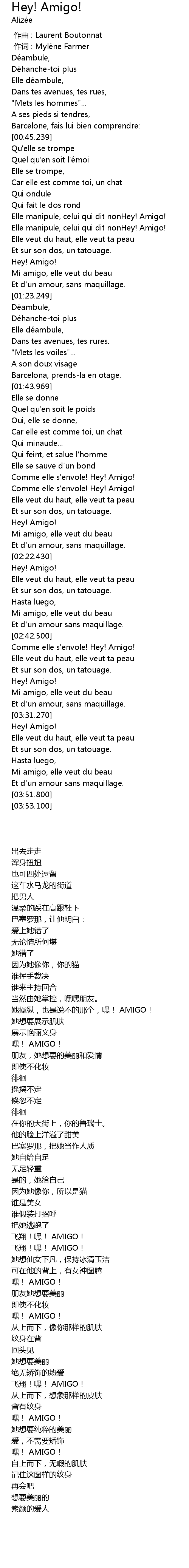 | [03:12.250] | Comme elle s' envole! Hey! Amigo! |