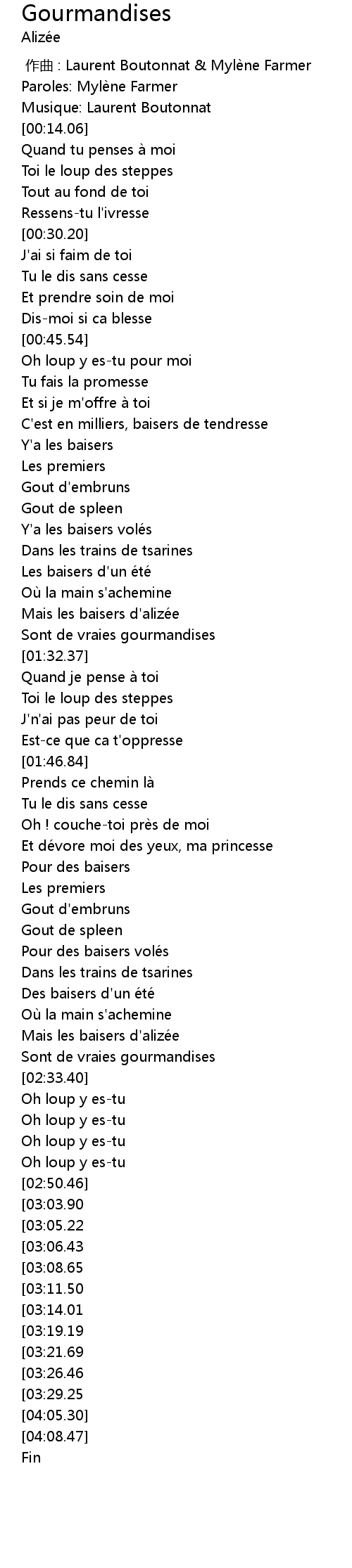 | [00:00.00] | 作曲 : Laurent Boutonnat & Mylène Farmer |