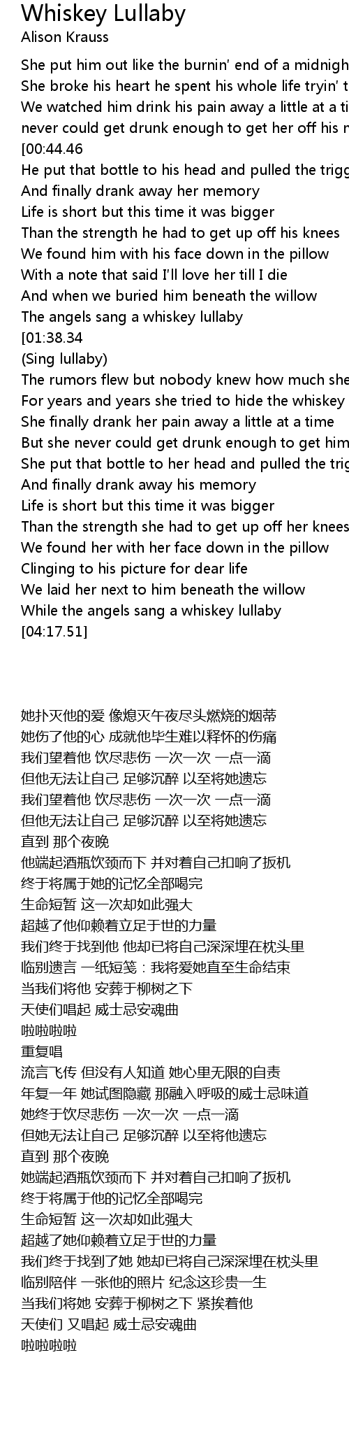 | [01:33.59] | The angels sang a whiskey lullaby |