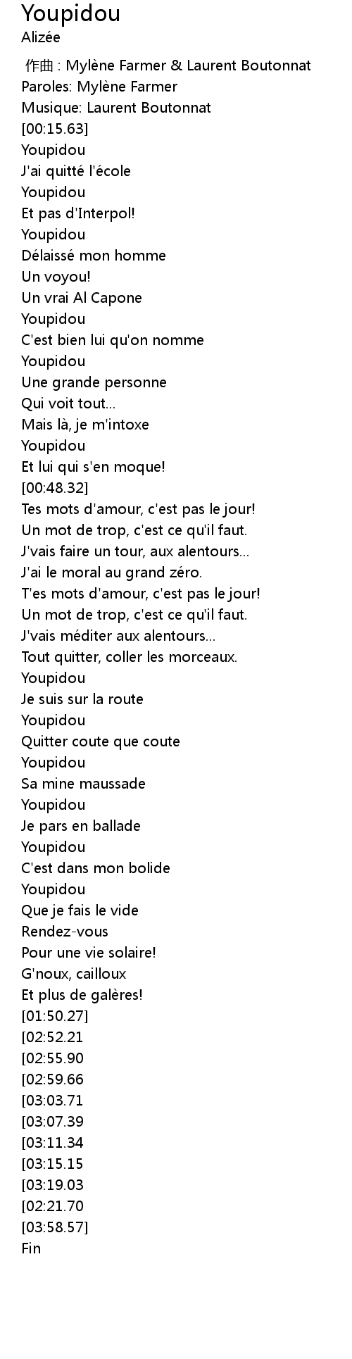 | [00:11.63] | Paroles: Mylè ne Farmer |