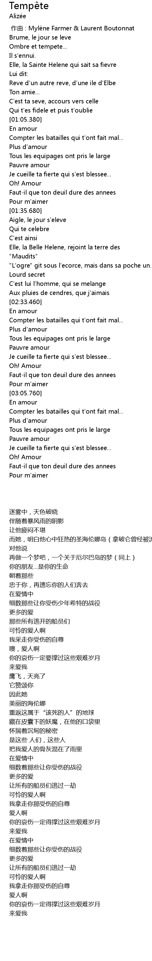 | 歌曲 | Tempête |