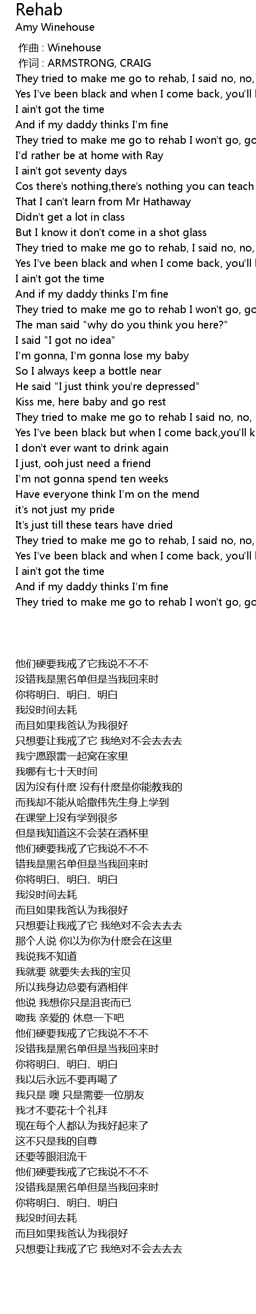 | [02:13.169] | They tried to make me go to rehab I said no, no, no |