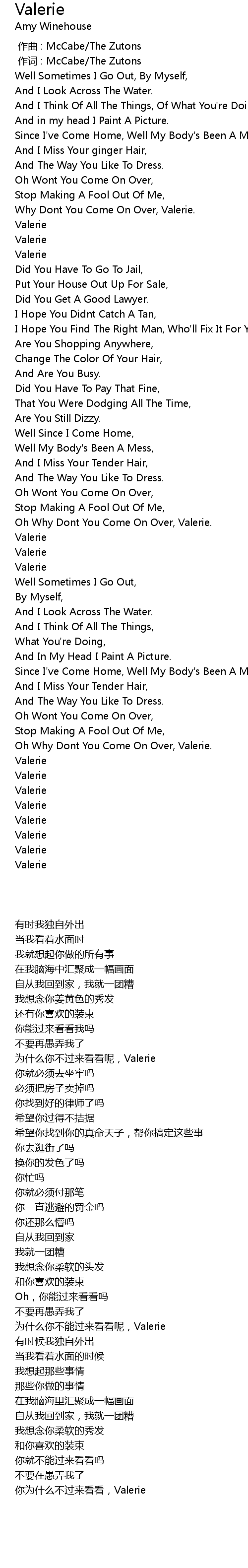 | 歌曲 | Valerie |