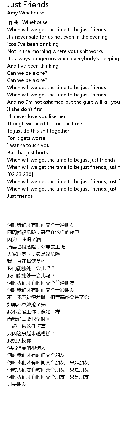 | [02:44.850] | When will we get the time to be just friends, just friends |