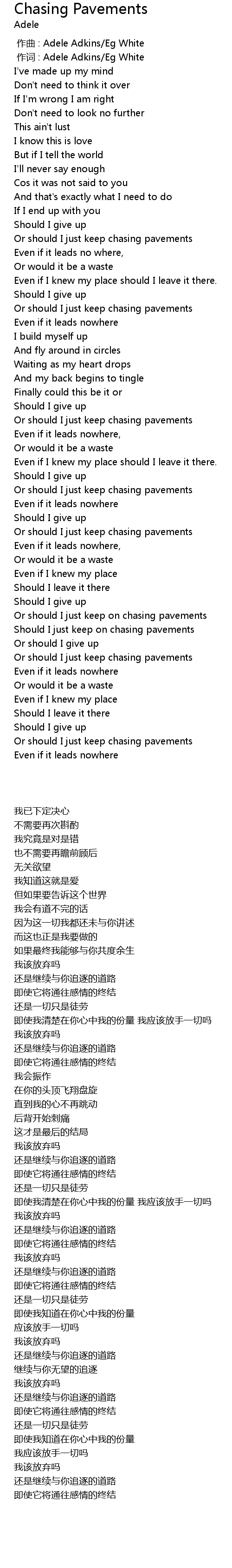 | 歌曲 | Chasing Pavements |