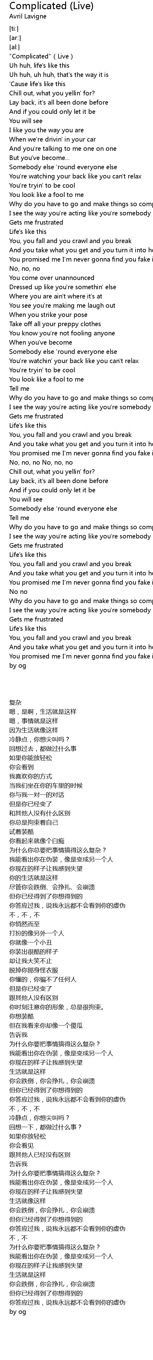 | [00:00.00] | " Complicated" Live |