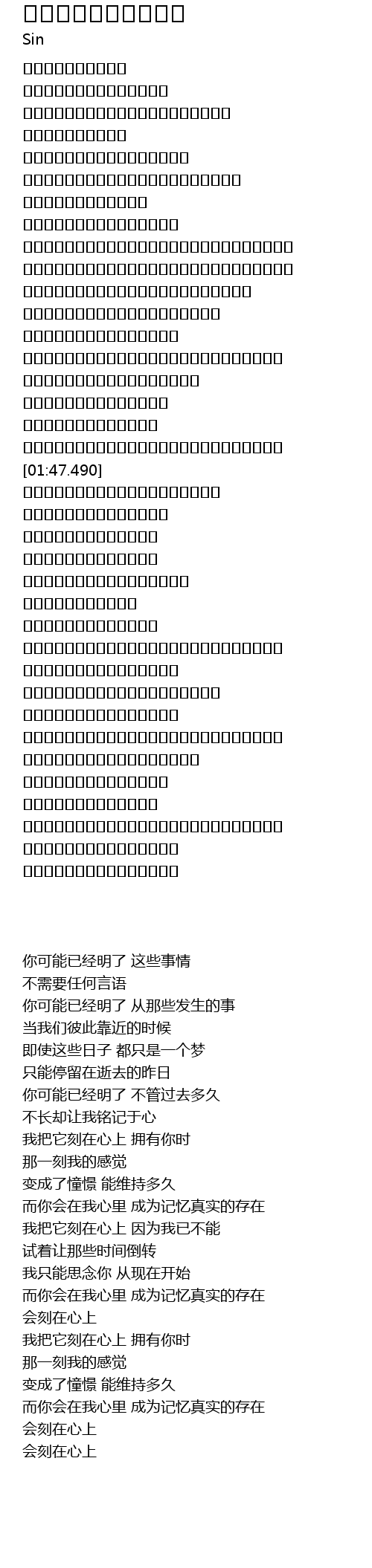 | [01:37.490] | 而你会在我心里 成为记忆真实的存在 |