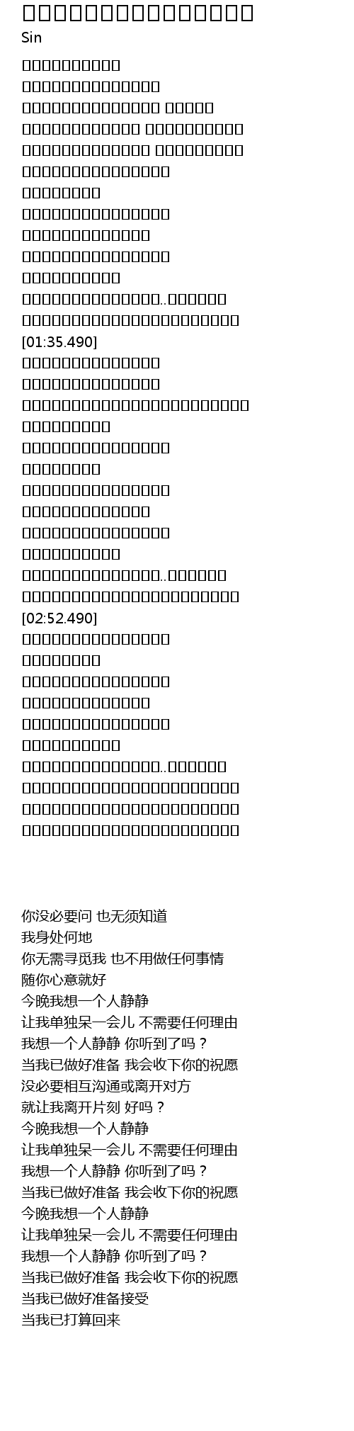 | [00:55.490] | 今晚我想一个人静静 |
