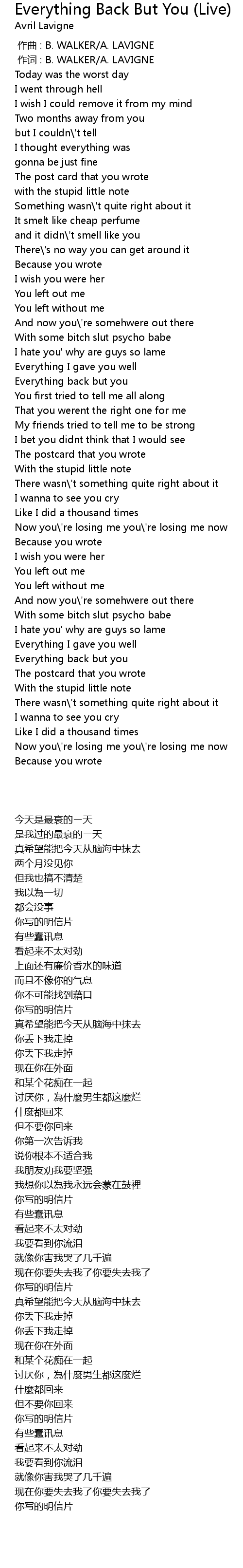 | [00:00.00] | 作曲 : B. WALKER/A. LAVIGNE |