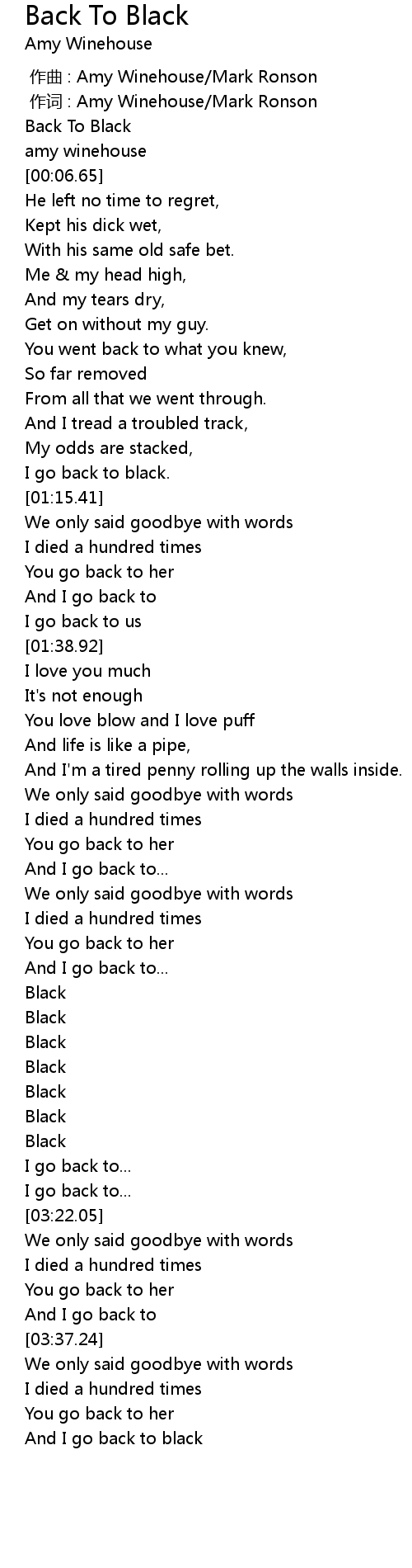 | [00:01.25] | Back To Black |