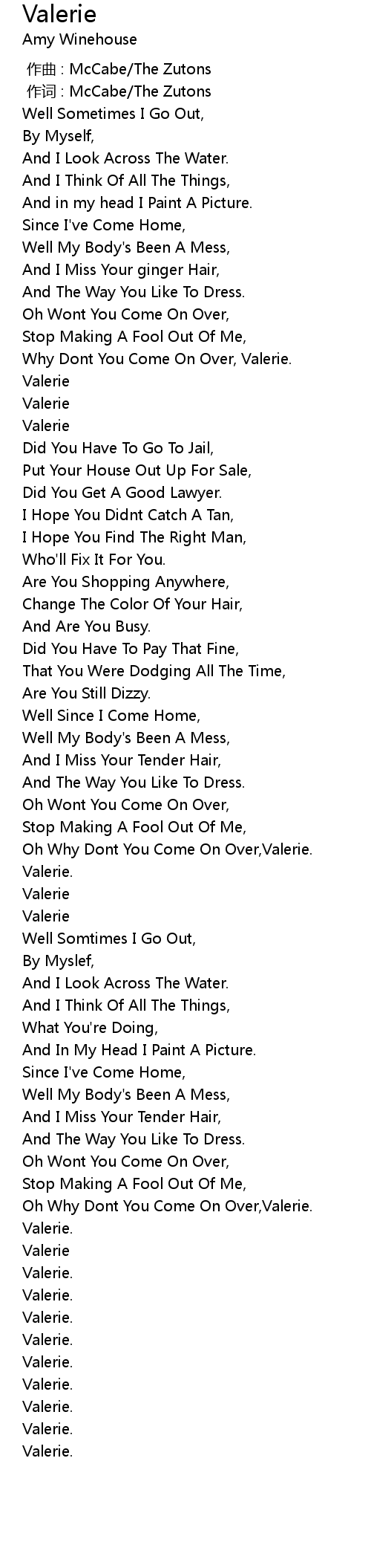 | 歌曲 | Valerie |