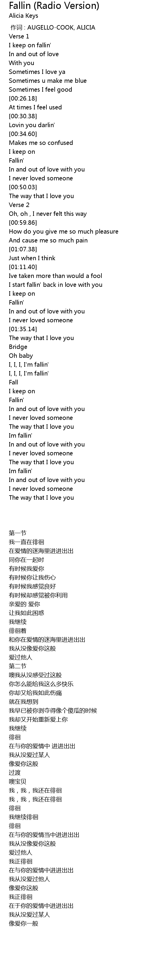 | [00:00.00] | 作词 : AUGELLO-COOK, ALICIA |