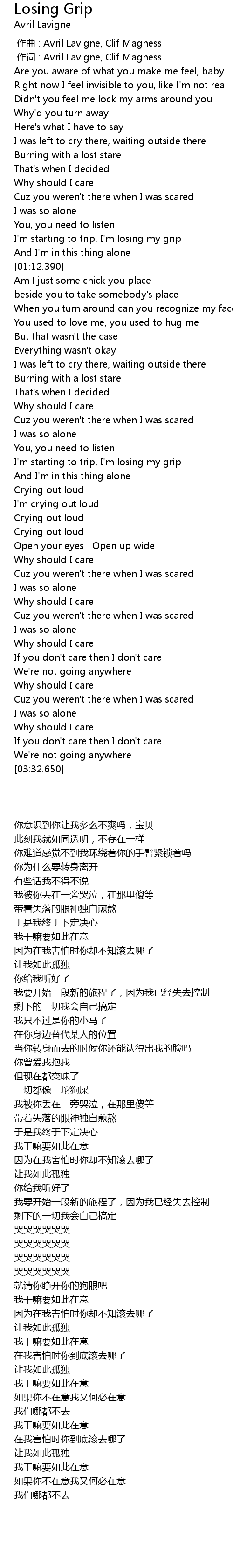 | [00:01.00] | 作词 : Avril Lavigne, Clif Magness |