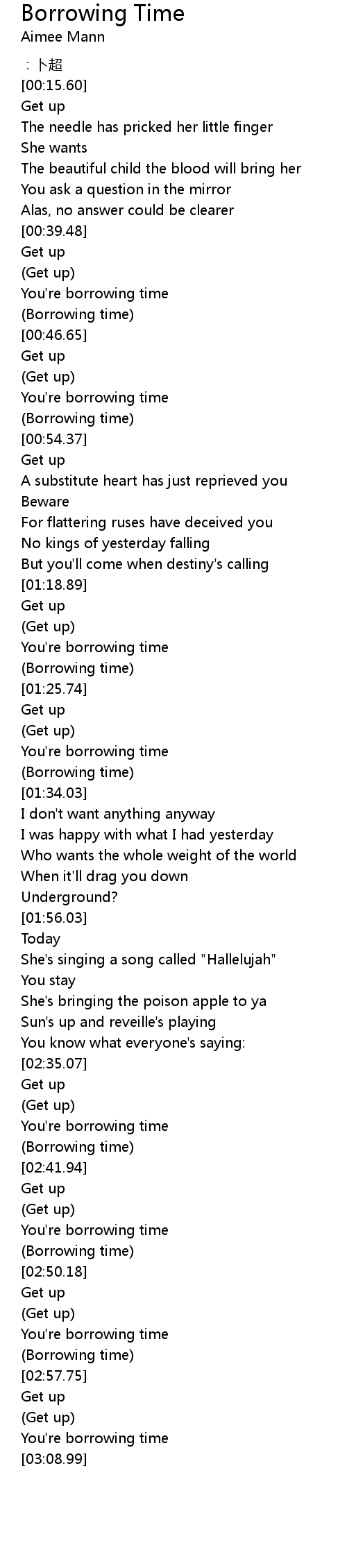| [01:23.74] | Borrowing time |