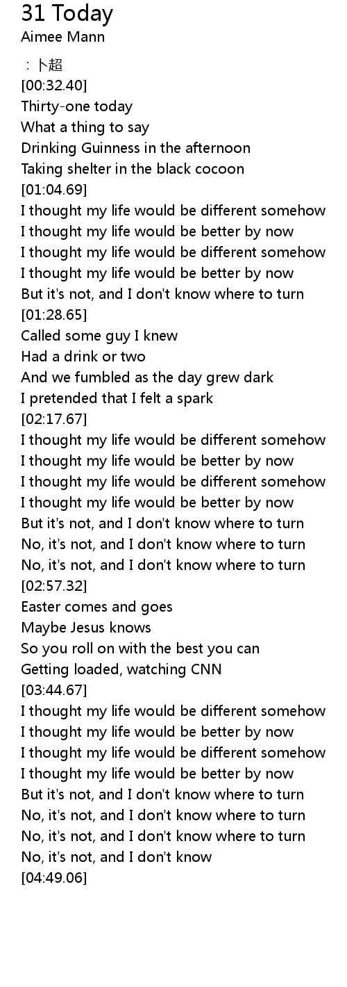 | [00:34.24] | Thirty-one today |