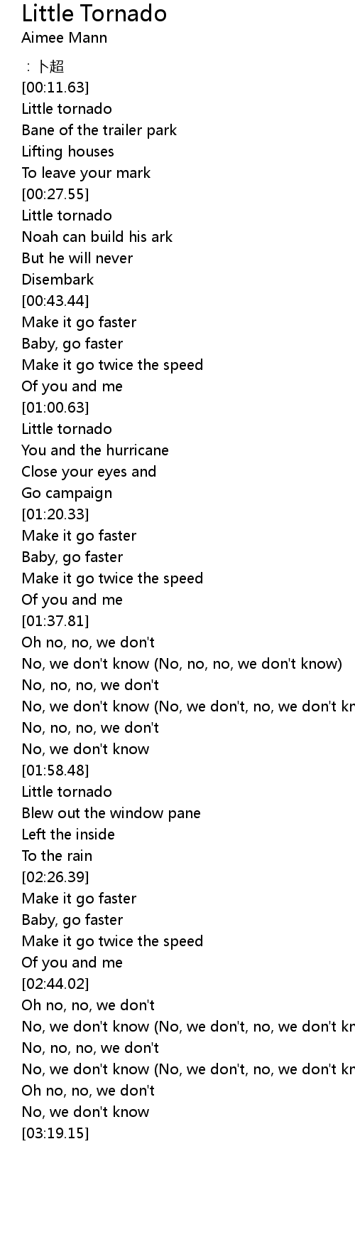| [00:27.99] | Little tornado |
