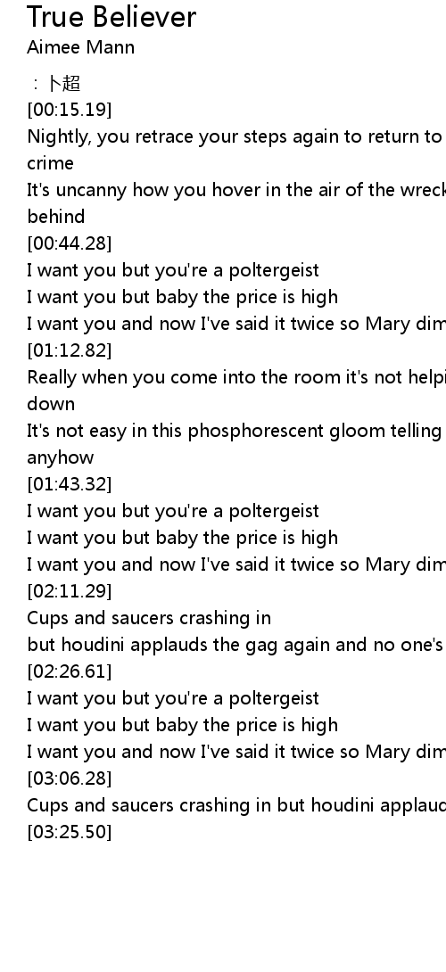 | [02:53.99] | I want you and now I've said it twice so Mary dim the lights |