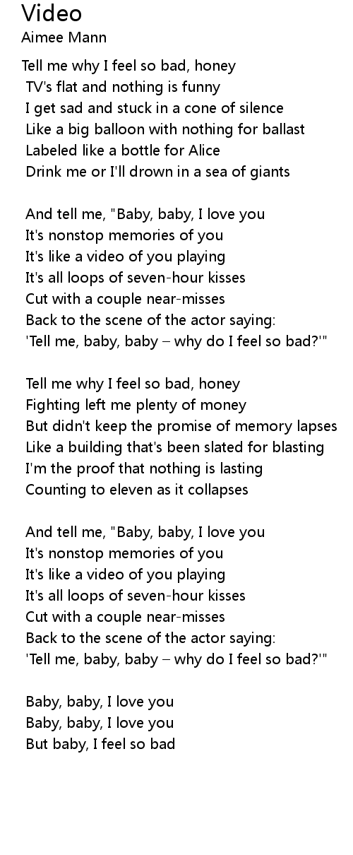 | ' Tell me, baby, baby why do I feel so bad?'" | |